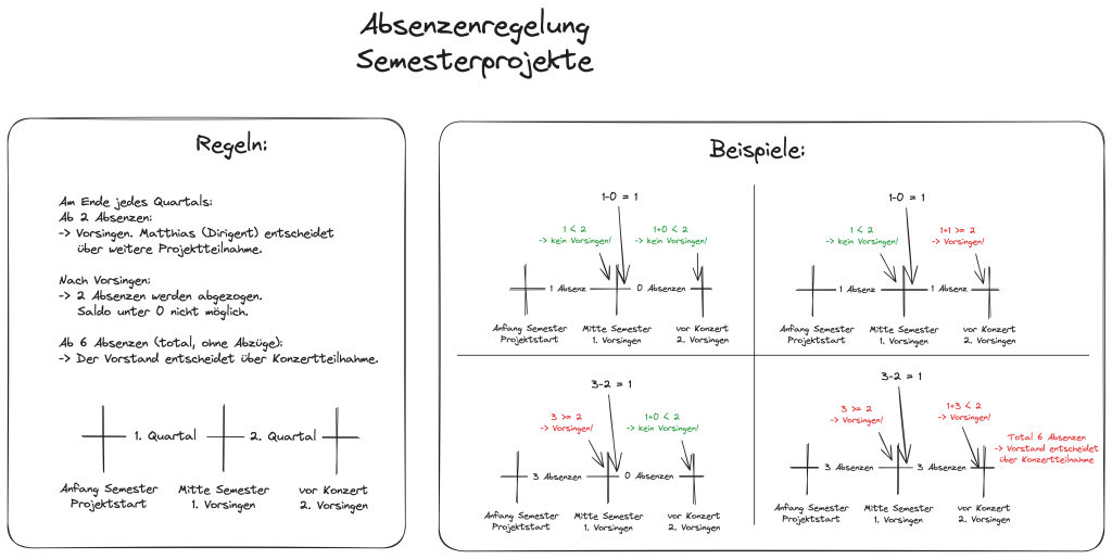 Auch wenn du weisst, dass du an bestimmtem Proben fehlen wirst, melde dich frühzeitig beim Dirigenten (dirigent@unichorbern.ch) ab.